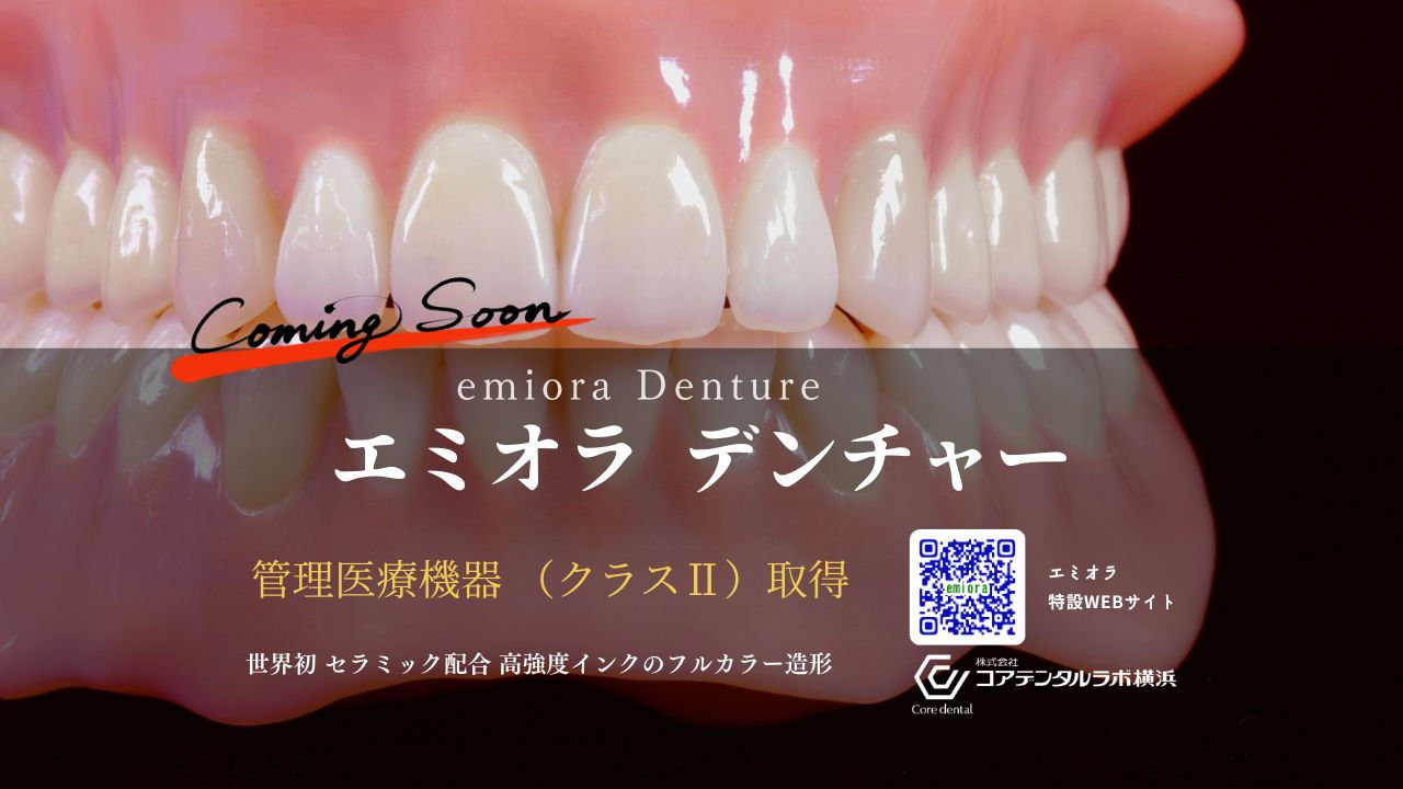 「emiora」の高強度やフルカラーを生かし、審美的で従来の硬質レジン歯を上回る強度の人工歯と床が一体プリントされたモノリシックデンチャーが作れるのではないかと開発を進めています
